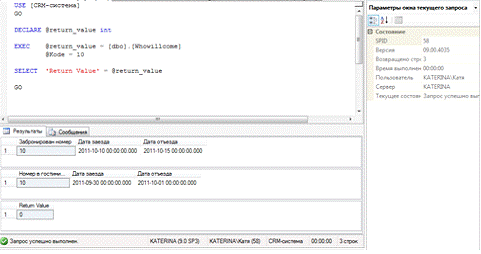 int @return_value = [dbo].[Whowillcome] 'Return Value' =