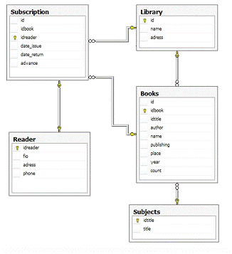 база данных, предназначенная для учета данных библиотек. Выполнены запросы к