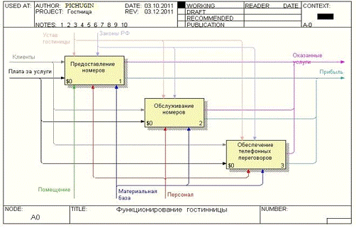 бизнес-процессов гостиницы используется CASE-средство верхнего уровня BPWin.