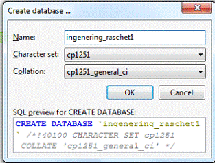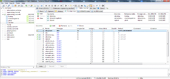 ingenering_raschet1» отображается список таблиц, входящих в базу
