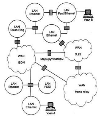 интерсетью (internetwork или internet). Сети, входящие в сеть, называются