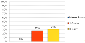 Рисунок 1.1 - Стаж работы фельдшеров СМП, участвовавших в анкетировании