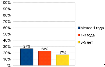 1. Основной стаж работы приходится на 3-5 лет. График стажа работы