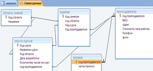 Из рисунка следует, что схема данных состоит из 5 объектов «таблица».