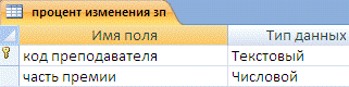 преподавателя (ключевое поле), часть премии.