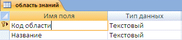Первая таблица «Область знаний» необходима для хранения списка областей