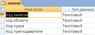 преподаватель какой курс ведет и должна содержать следующие поля: код занятия