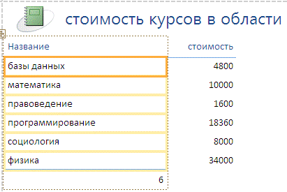 . «Стоимость курсов в области» - в данном отчете содержится