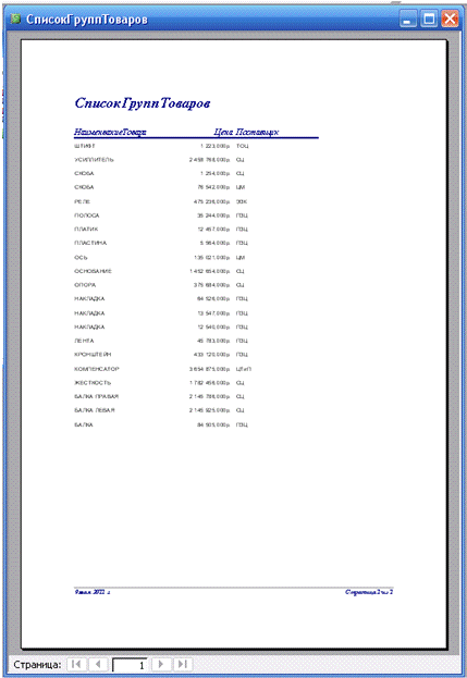 Рисунок 3.1.?-Отчёт по Список Груп Товаров.