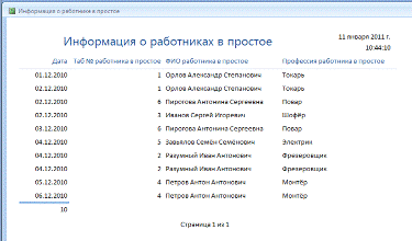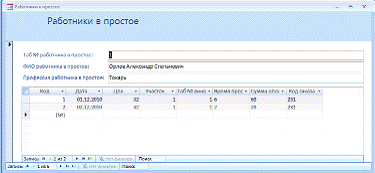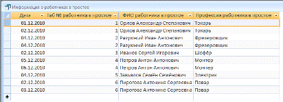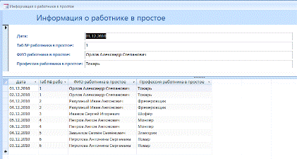. «Информация о работнике в простое» - выдаёт на экран всю
