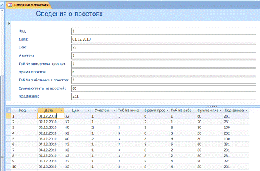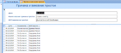 Разработка программного продукта 'Сведения о простоях' в среде MS Access