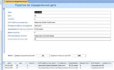 служит для редактирования сведений о простоях на производстве. Пример формы