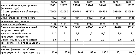 промышленности России в период с 2004 по 2010 год.