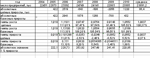 Аналогично, базисный темп роста показывает, что число предприятий в 2008 году