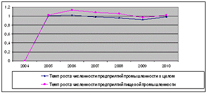 числа предприятий в пищевой промышленности и в промышленности целом (рисунок