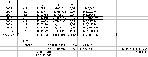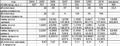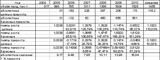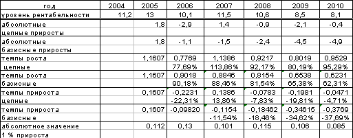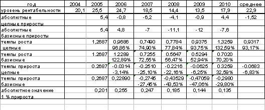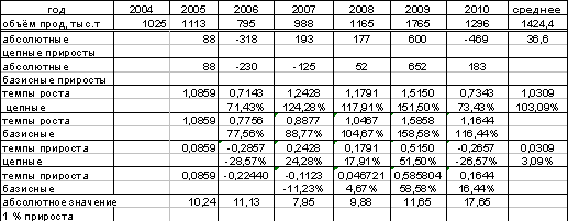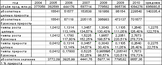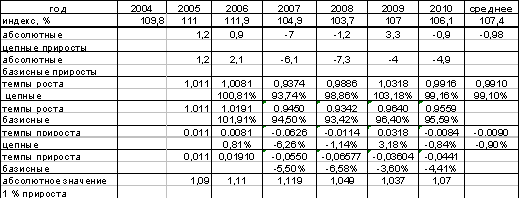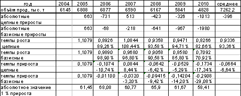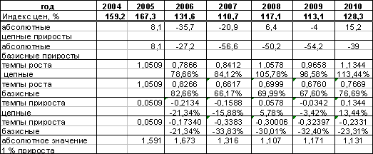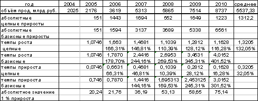 период с 2004 по 2010 год по формуле: