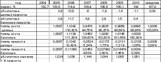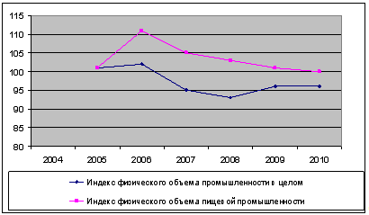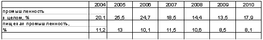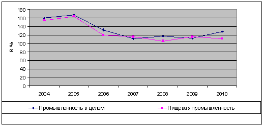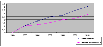 Оценка интенсивности развития пищевой промышленности в 2004-2010 гг