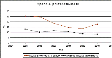 рентабельности (в промышленности - на 6,83%, в пищевой промышленности - на
