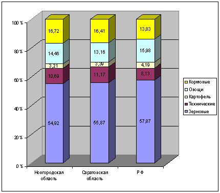 среднероссийской. Во обоих областях высока доля технических и кормовых культур.