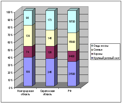 такова, что в Новгородской области растет поголовье свиней, а в Саратовской