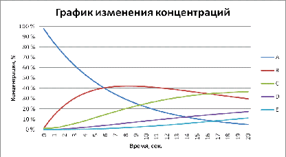 веществ В, С, E, D. Концентрации вещества А в начальный момент времени