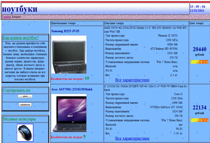 Рис.15. Сортировка товаров в Интернет-магазине.