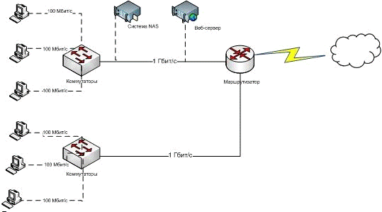 (рис. 14). Добавятся дополнительные коммутаторы (было 4, станет 7). Система NAS, веб-сервер и маршрутизатор