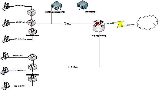возможности выхода в глобальную сеть Интернет. Была выбрана топология сети,