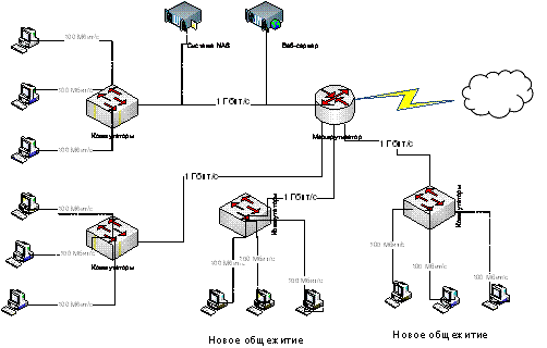 Разработка сети между общежитиями и организация выхода в Интернет