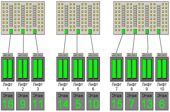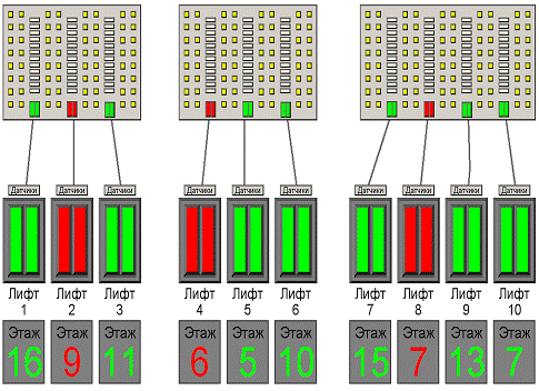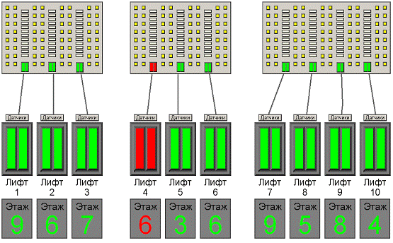 объектов (лифтов) в режиме реального времени (Рисунок А.6).