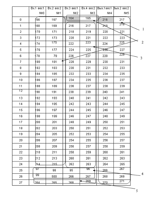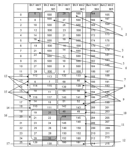соответствии с нумерацией строк МКП, выполненной снизу вверх.