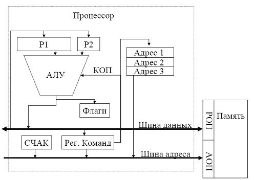 регистры операндов Р1 и Р2, регистр флагов (Флаги)