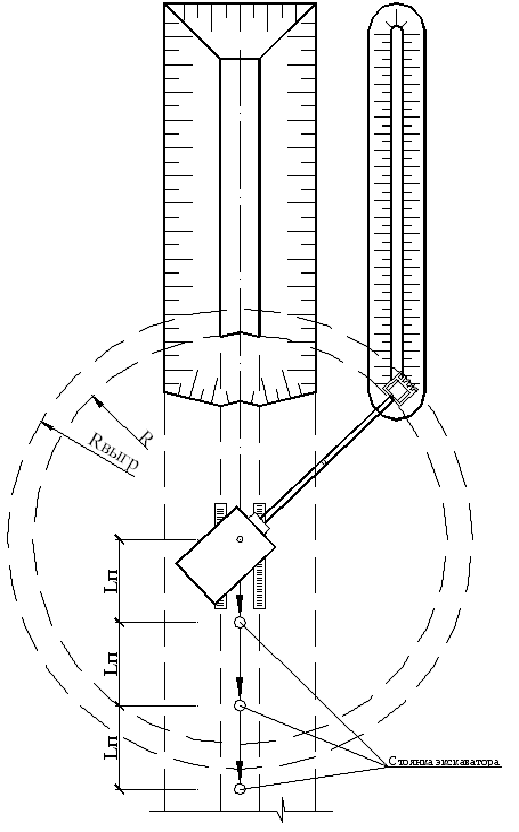 экскаватора по оси траншеи;