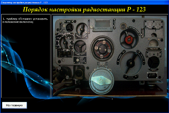 появляется окно обучения порядку настройки радиостанции Р-123 (рисунок 13). В