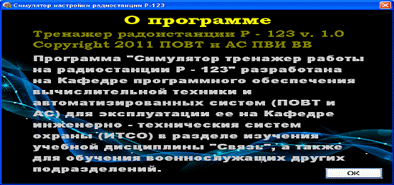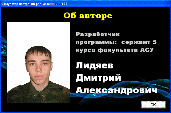 осуществил реализацию программного модуля «Радиостанция Р-123», являющимся