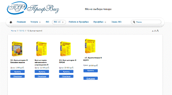 Рисунок 3.6 - Внешний вид сайта при выборе