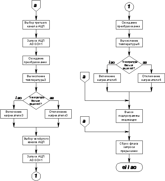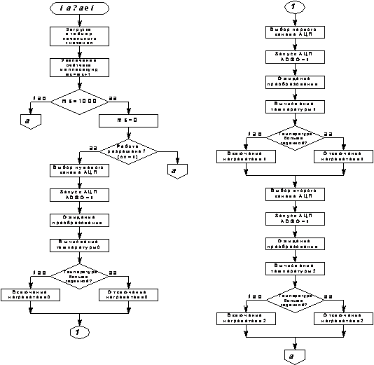 температуры измеренной термодатчиками, необходимо включать и выключать соответствующие