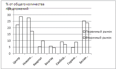 однокомнатных квартир показало высокий уровень их предложения на рынке. Большим