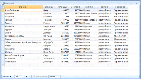 Начинать надо со вспомогательных таблиц - «Религии» (рис. 1), «Государственный