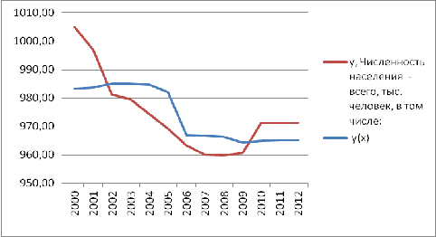 численности населения, линейное уравнение тренда для этого воспользуемся