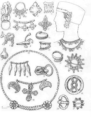 гарнитура одежды- пряжки, поясные бляшки и кольца, а также единичные украшения.