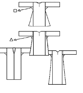 полотнищ, в шагу - ластовица, пояс широкий, без разреза, на вздержке - гашнике,