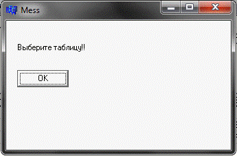 выбрана, появиться сообщение об ошибке (Рис 5). Если таблица выбрана, в окне
