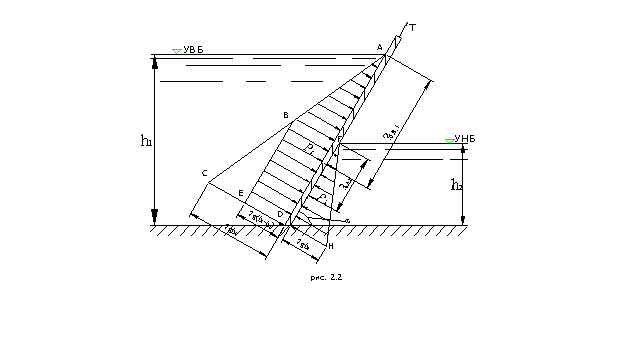 o глубина воды h1 = 2 м.(ВБ), h2 = 1,2 м.(НБ);