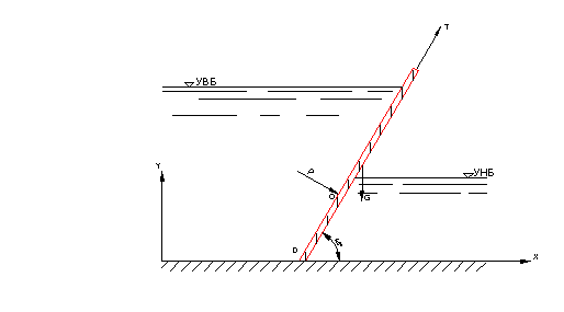 давления воды на затвор со стороны верхнего и нижнего бьефов, а также центры