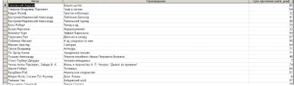 Результат выполнения отчета на основе запроса на