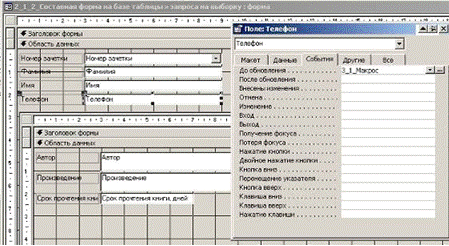 конструктора, и в свойствах поля «Телефон» на вкладке «События» в поле «До