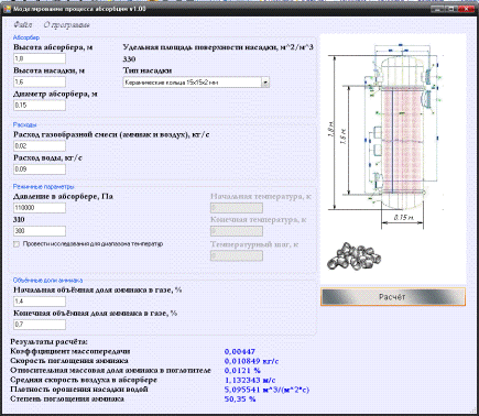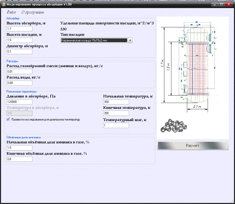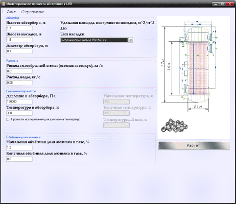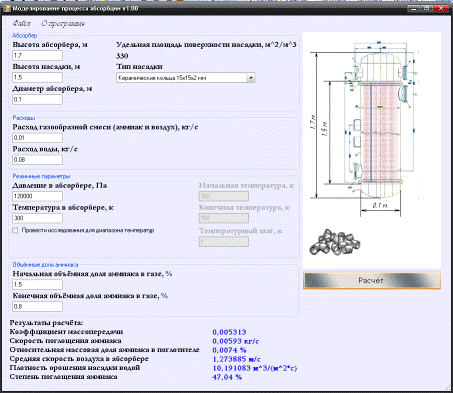 В качестве примера в программе был взят абсорбер, диаметр и высоту