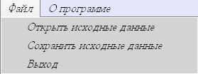 - Сохранить исходные данные - возможность сохранения исходных данных в файл