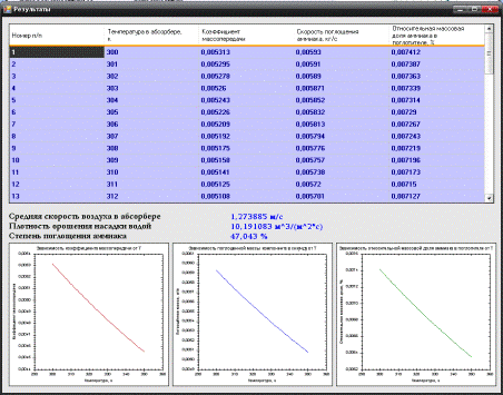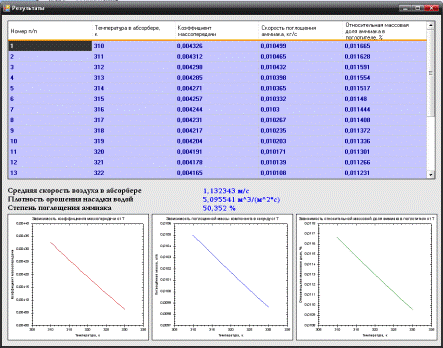 опытных данных в результате работы абсорбера, а также отображение результатов,